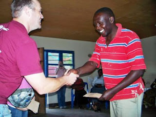 Tuesday began with the sunrise and the construction team was on site at 6:30 a.m. We thought we were starting early, but the children were already dressed, had a prayer time, and some had even completed chores. This picture with a sharp looking, new uniform, and great smile brightens any morning. While we still felt pretty good about getting started so early, we're not sure we looked so sharp or had such endearing smiles. Construction progress went fairly well. Throughout the day, we had to get more materials - we wanted to make sure Mpeli stayed busy.